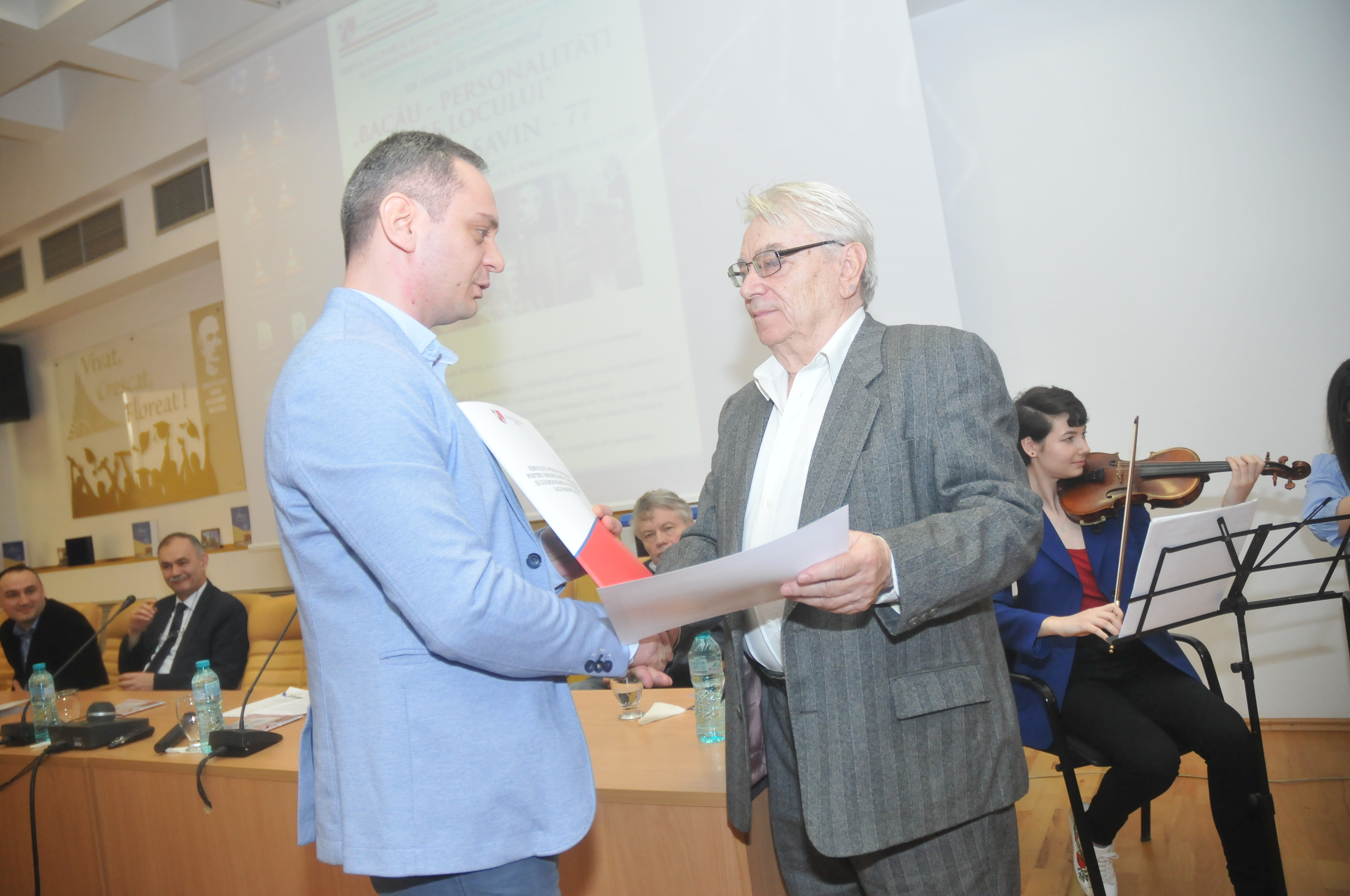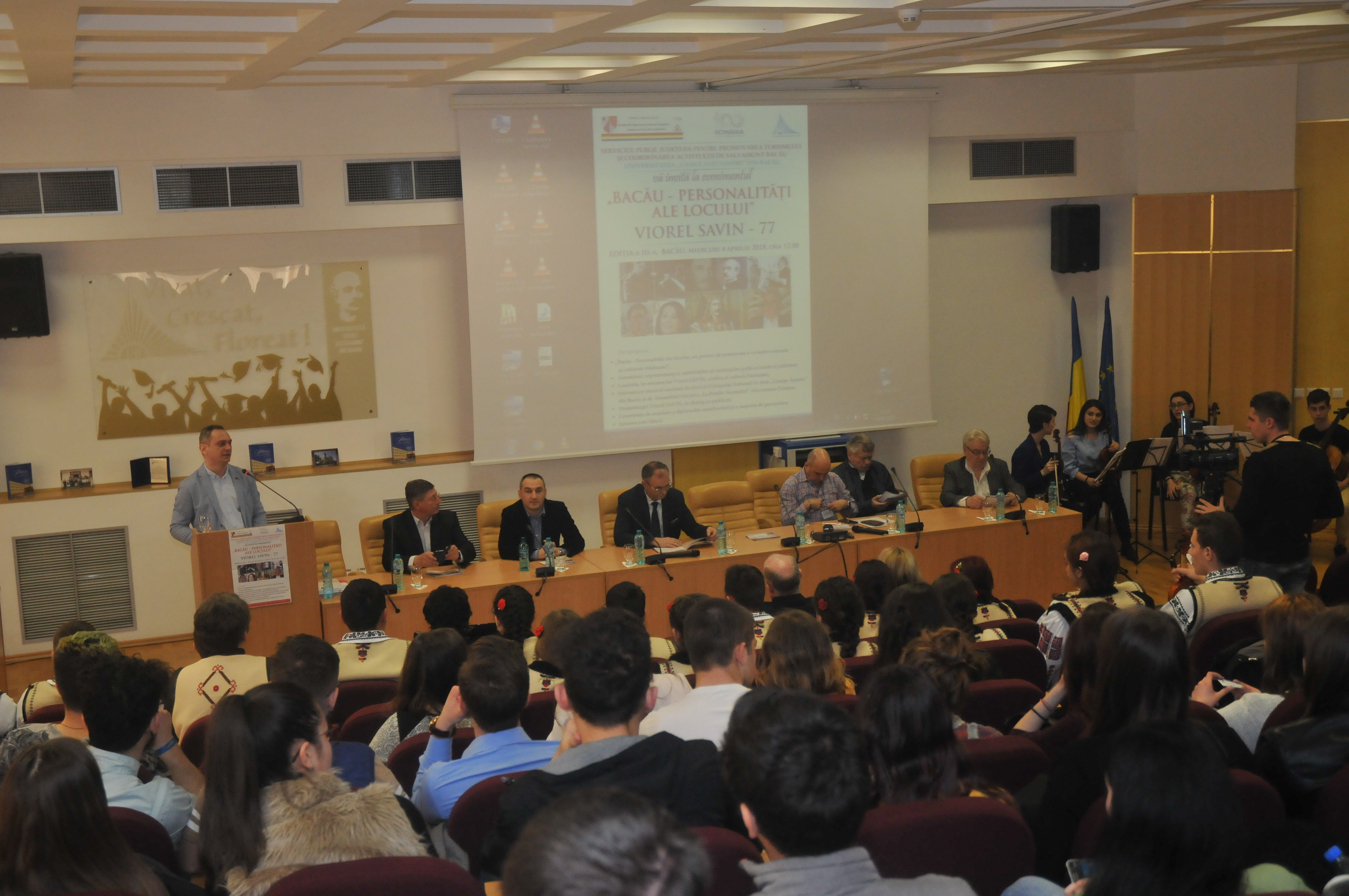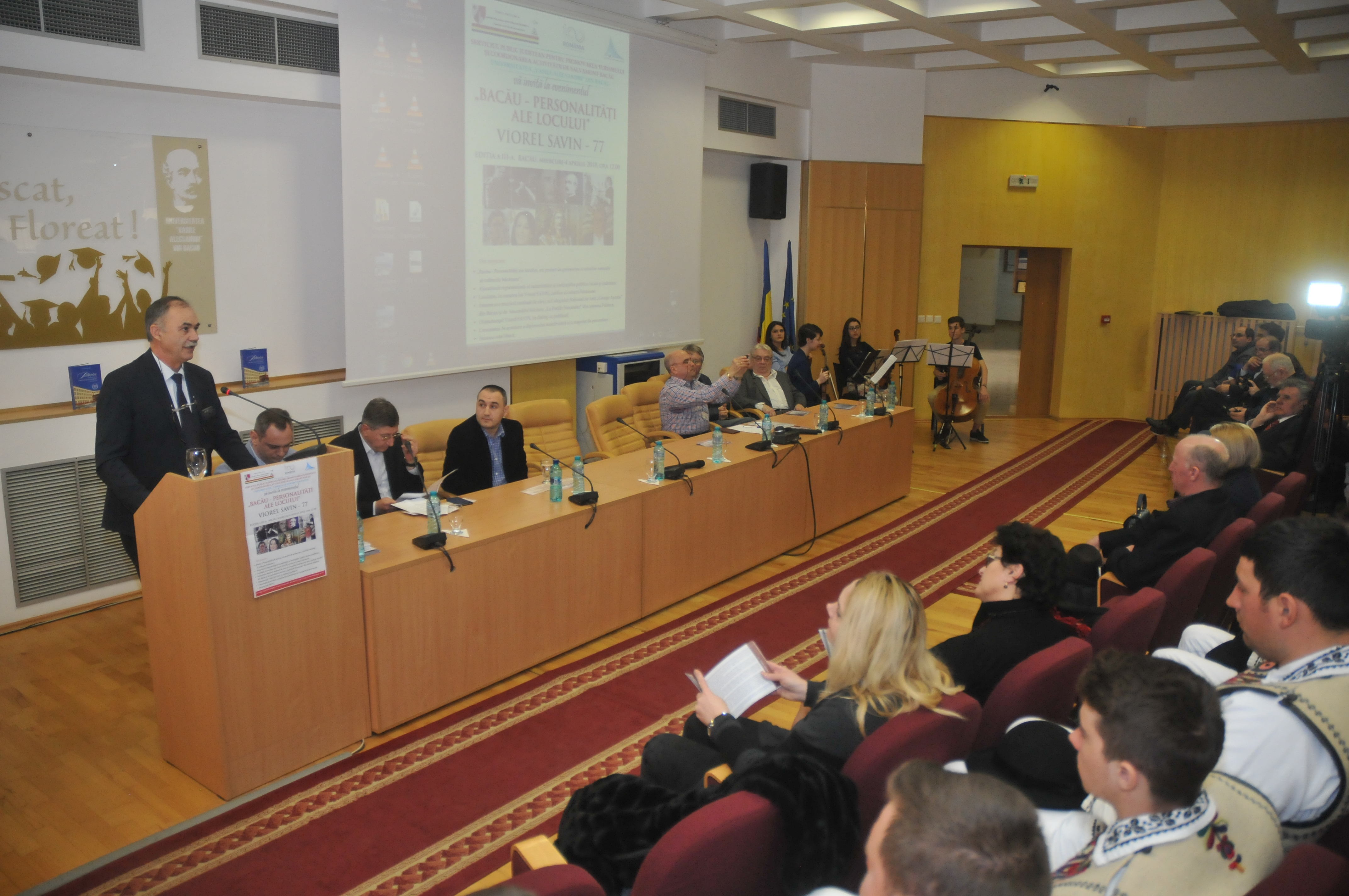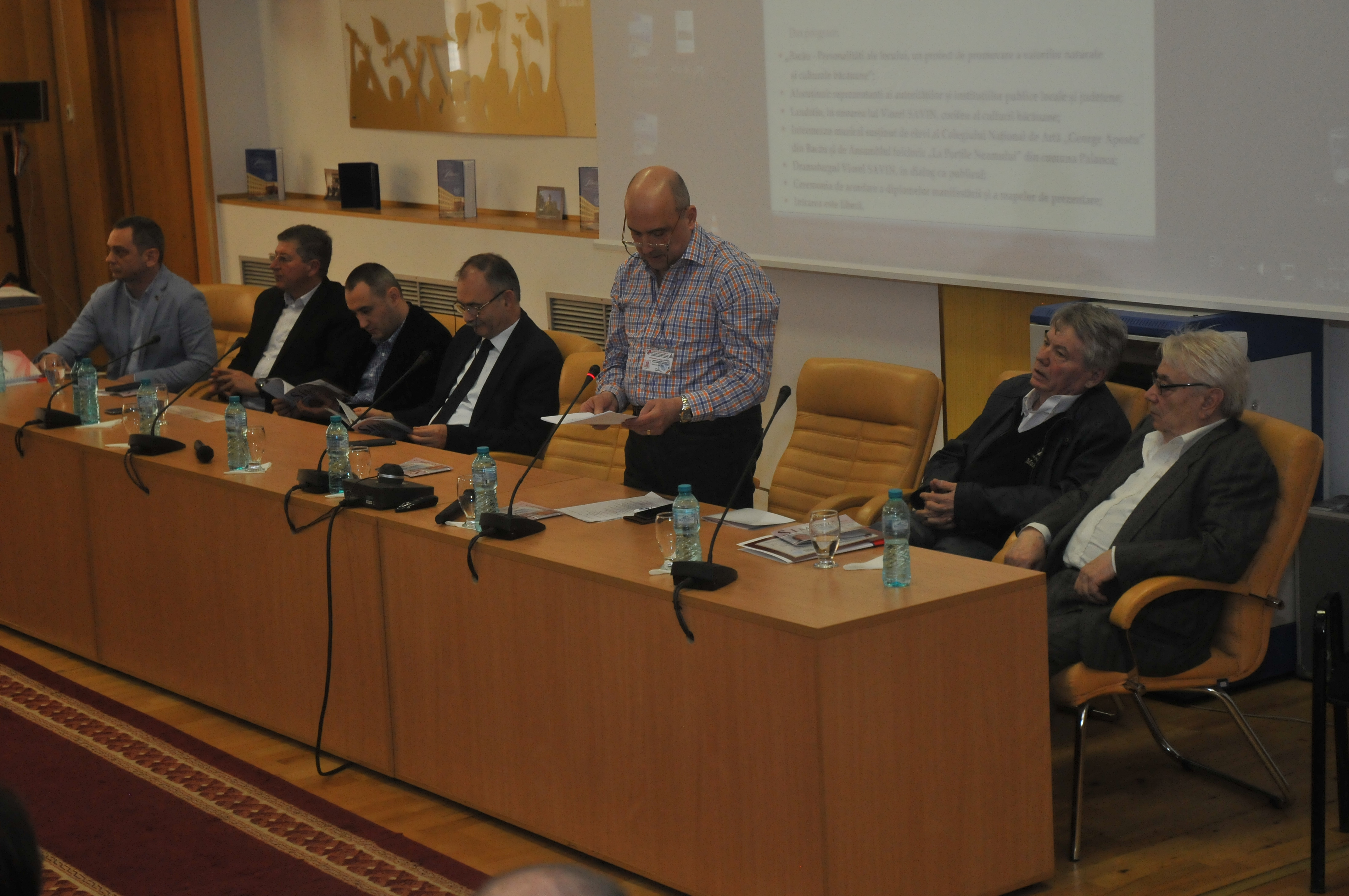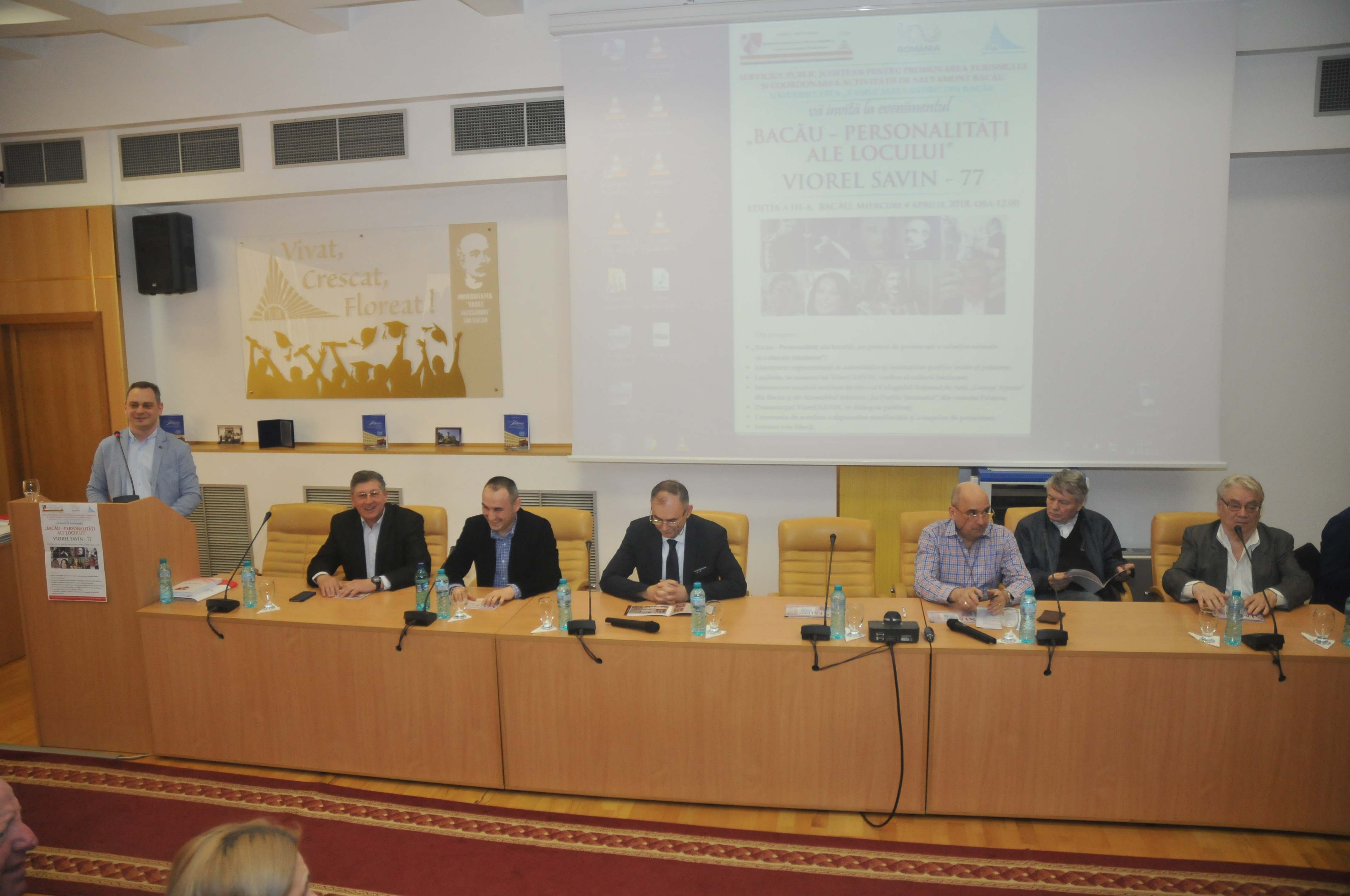 În Aula Universităţii „Vasile Alecsandri” au fost prezenţi Romil Botezatu, director al SPJPTCAS, care într-o scurtă alocuţiune a prezentat asistenţei scopul şi atribuţiile Serviciului Public pentru Promovarea Turismului şi Coordonarea Activităţii de Salvamont, felicitând pe cel omagiat pentru întreaga activitate de scriitor, dar şi pentru promovarea imaginii judeţului Bacău în ţară şi în lume. Un mesaj de la suflet pentru suflet a prezentat şi Sorin Ailenei, manager public principal al Instituţiei Prefectului, care a precizat că acest proiect devine în timp o tradiţie, o poveste frumoasă despre oameni, despre cultura şi spiritualitatea băcăuană.