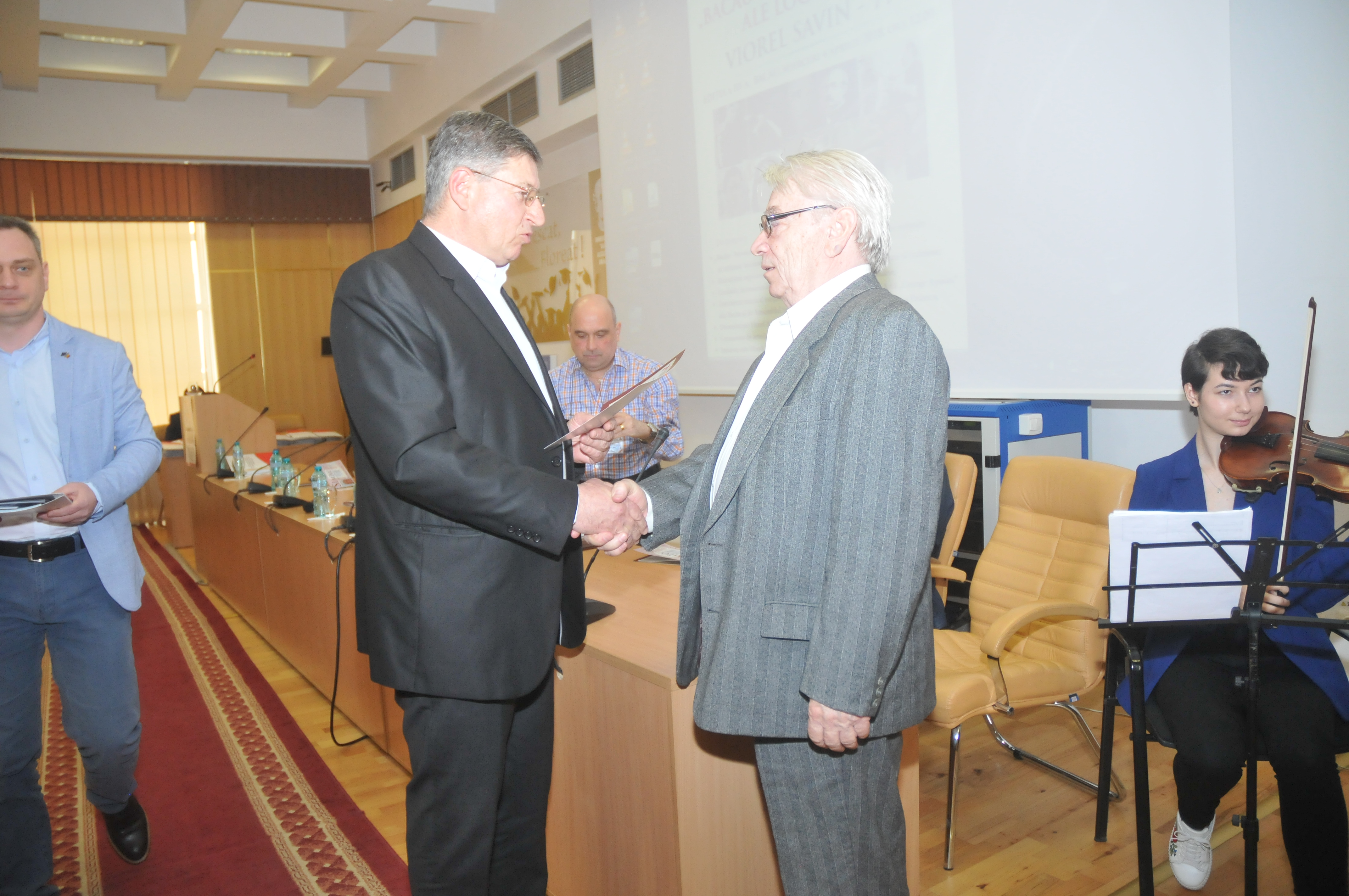 Rectorul Universităţii „Vasile Alecsandri, prof.univ. dr. ing. Carol Schnakovszky, a mulţumit organizatorilor pentru invitaţia la parteneriat, transmiţând celui sărbătorit cele mai bune urări de sănătate, mulţi ani şi rodnici. „Laudatio, în onoarea lui Viorel Savin” a aparţinut scriitorului Petre Isachi, director al revistei „13 Plus”, amintind şi reamintid publicului principalele repere biografice, activitatea profesională, supunând atenţiei personalitatea complexă a prozatorului, dramaturgului, poetului şi publicistului Viorel Savin, desfăşurată în cei aproape 60 de ani de activitate pusă în slujba literelor româneşti.