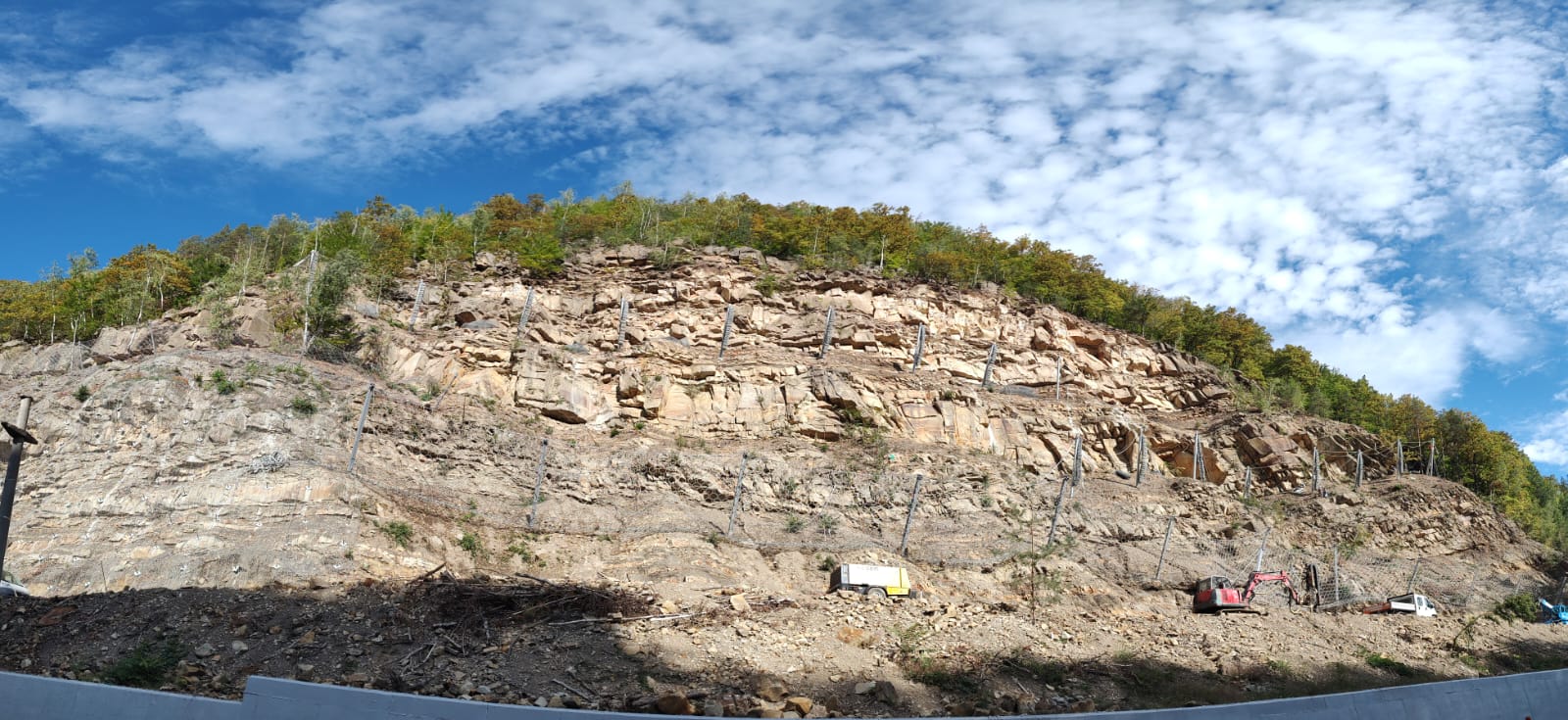 În imagini, montare plase retenție, execuție zid sprijin și frezare suprafețe în vederea așternerii covorului asfaltic (strat de uzură).