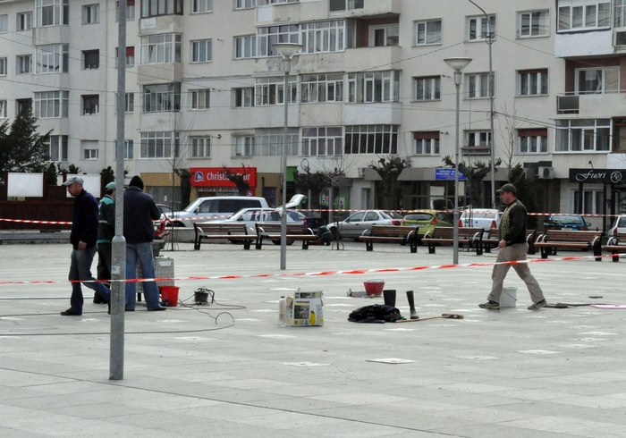 Renovarea intregii piatete, care a inclus montarea unor placi de granit din China si plantarea de arbori, a costat 140.000 de lei. Noul proiect a ingropat, insa, in beton, intreaga zona centrala, care, odinioara, era spatiu verde.