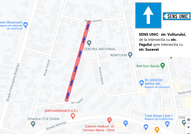 A fost instituit SENS UNIC pe strada Vulturului, dinspre intersecția cu strada Fagului spre intersecția cu strada Sucevei.