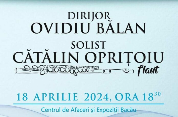 Pe data de 18 aprilie, la ora 18:30, pasionații de muzică sunt invitați să se alăture Filarmonicii Mihail Jora Bacău la Centrul de Afaceri și Expoziții Bacău pentru o seară de neuitat. Dirijorul concertului va fi maestrul Ovidiu Bălan, iar solistul serii va fi talentatul flautist Cătălin Oprițoiu.