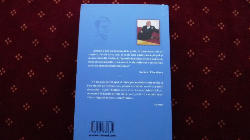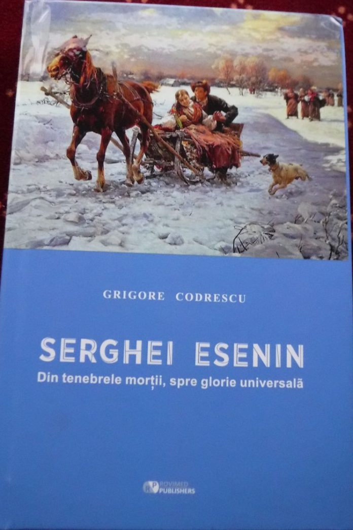 Să revin la cartea care mi-a adus o bucurie: „Serghei Esenin. Din tenebrele morţii, spre glorie universală”, autor Grigore Codrescu, profesor, critic şi istoric literar, iar pe coperta interioară, la titlu se mai adaugă „Micromonografie critică”, apărută la Editura Rovimed Publishers, 2019. „O carte, după cum scrie autorul în autograf (Mulţumesc, domnule profesor), cu colaborare internaţională: autor critic român, temă din Rusia, editor din Rep. Moldova şi hârtie finlandeză.”