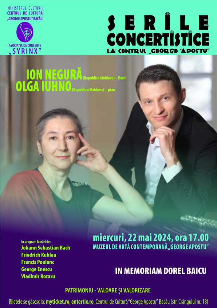 Centrul de Cultură „George Apostu” în parteneriat cu Asociația de Concerte „SYRINX” organizează în data 22 mai 2024, începând cu ora 17.00, o nouă întâlnire în cadrul programului