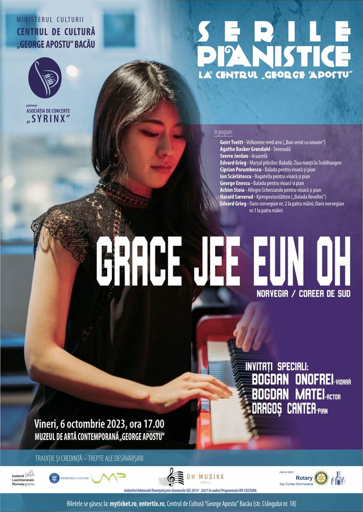 Centrul de Cultură „George Apostu” în parteneriat cu Asociația de Concerte „SYRINX” organizează în data 6 octombrie 2023, începând cu ora 17.00, o nouă întâlnire din cadrul programului „Serile pianistice”.