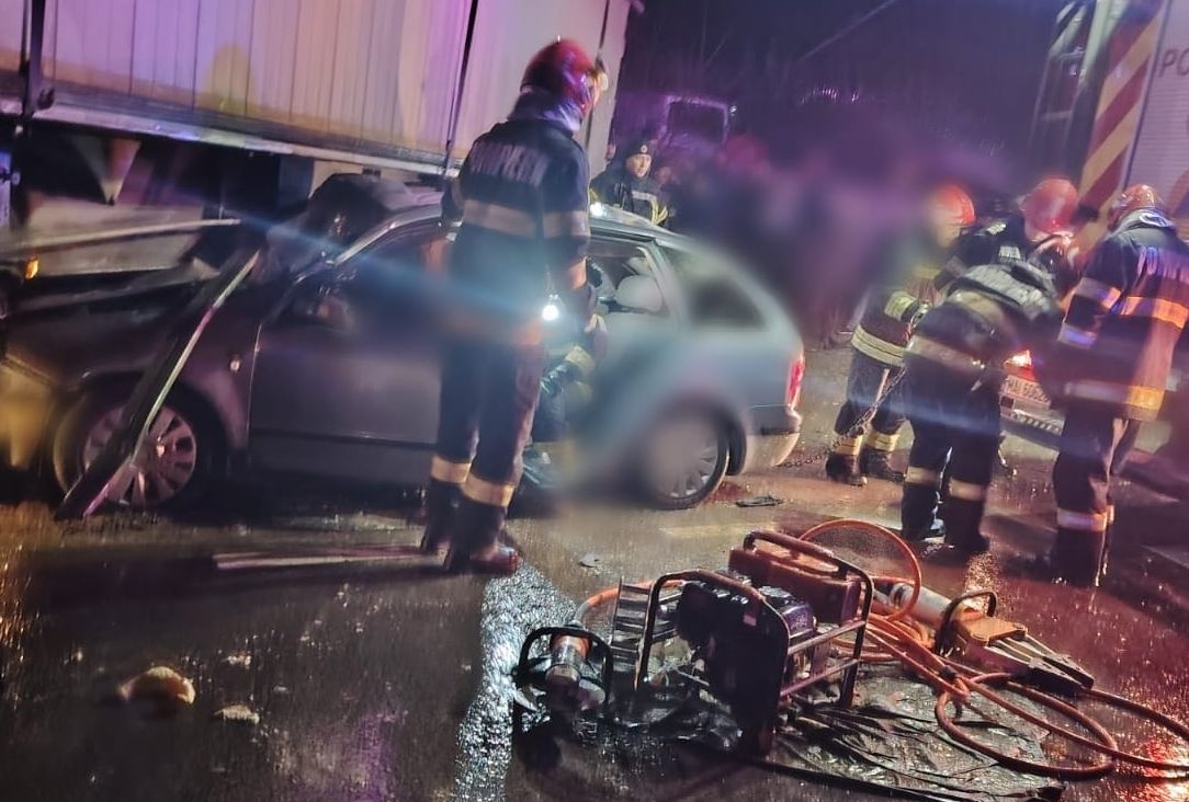 Firefighters from the Onești Fire Department, in cooperation with crews from the Adjud Fire Station, responded today to a severe road accident involving a truck and a car in the locality of Coțofănești.