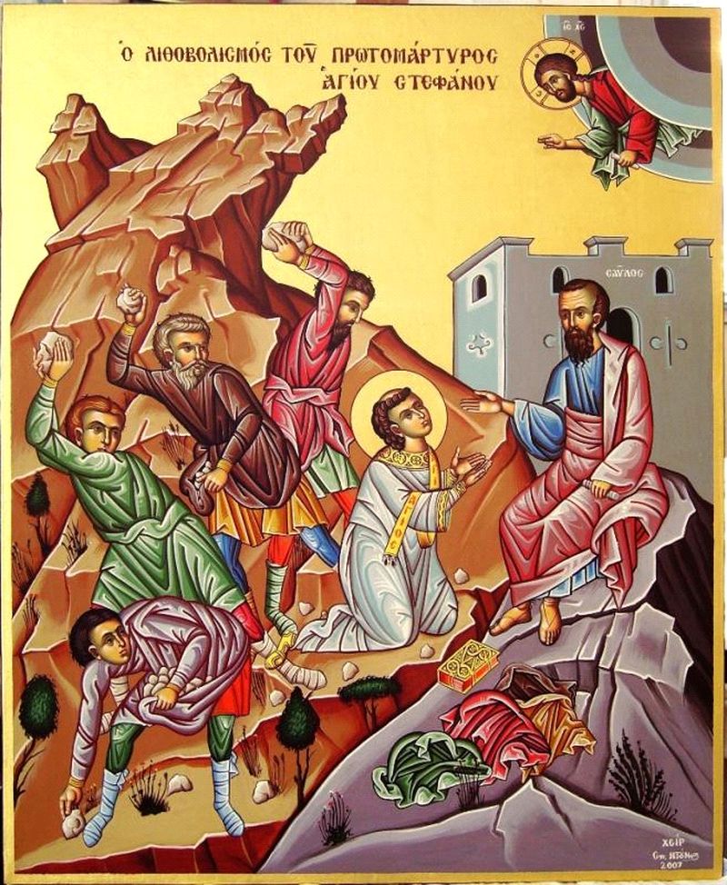 Această sete de ucidere, excludere din existenţa efemeră a omului a tot ce este Dumnezeiesc, Sfânt, Drept şi Bun a continuat în istorie, oamenii împărţindu-se între mărturisitori şi împotrivitori: la mijloc s-au aflat martirii, iar astăzi, în cea de-a treia zi a sărbătoririi Naşterii Domnului, Biserica îl cinsteşte pe primul martir: Sfântul Ştefan.