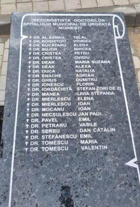 Într-o solemnă ceremonie desfășurată în incinta Paraclisului „Sf. Pantelimon” din Moinești, Înaltpreasfințitul Arhiepiscop Ioachim a săvârșit Sfințirea pietrei comemorative în memoria doctorilor Spitalului Moinești care au trecut la Domnul. Inițiativa de a instala această piatră comemorativă a aparținut doctorului Adrian Cotîrleț, directorul Spitalului Municipal Moinești.
