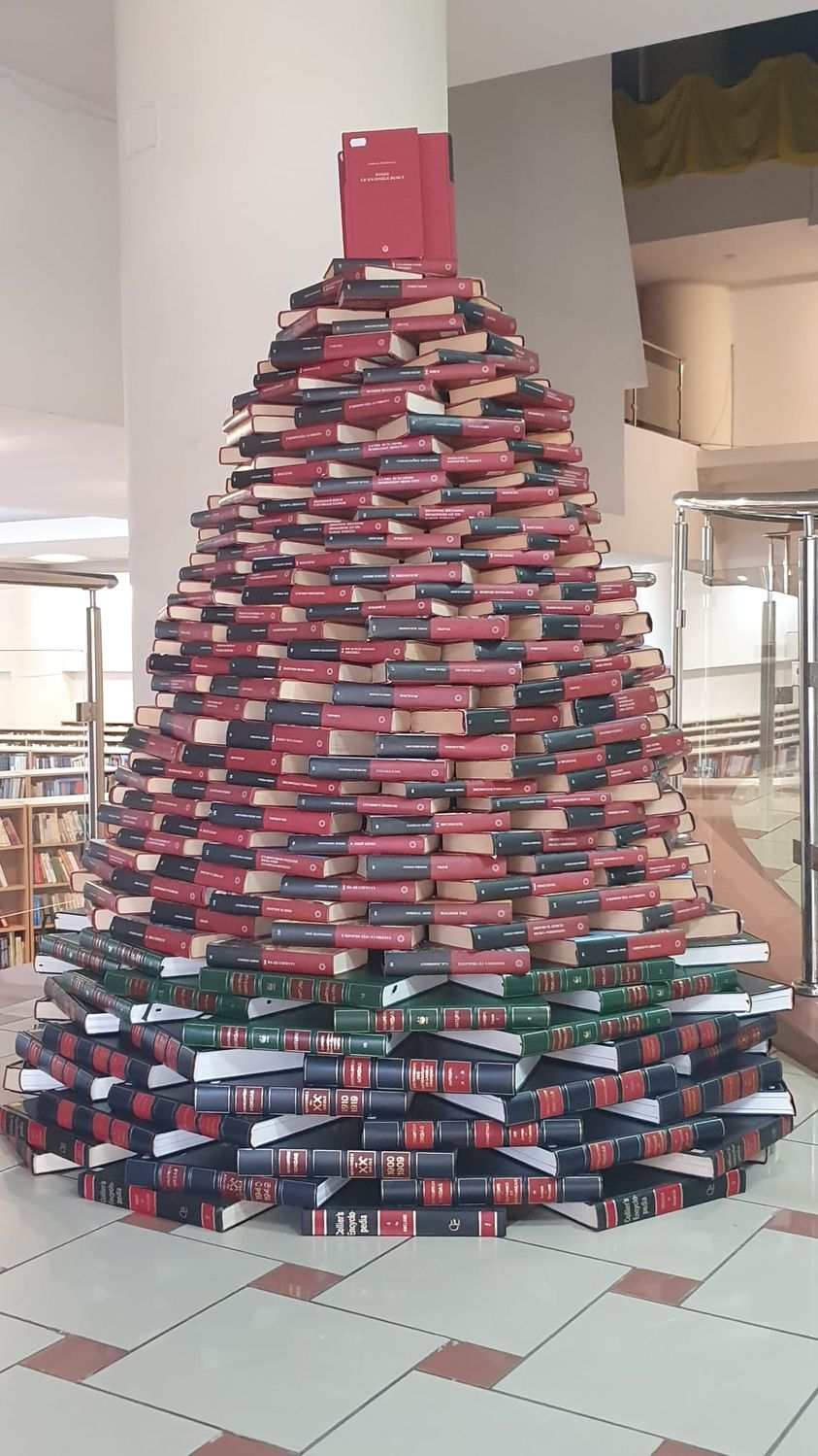 Bradul nu este alcătuit din cetină, ci din cărți, transpunând în realitate povestea magică a cărților care devin un element esențial al atmosferei festive. Înconjurate de luminițe strălucitoare, cărțile așezate cu grijă dau naștere unei opere de artă bibliofile, plină de semnificație și de frumusețe.