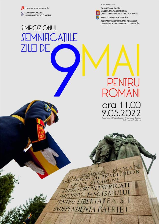 Complexul Muzeal „Iulian Antonescu” Bacău organizează luni, 09.05 2022, începând cu ora 11.00, manifestarea cultural-ştiinţifică dedicată zilei de 9 Mai. Pentru români ziua de 9 Mai are semnificaţii multiple: proclamarea Independenţei României (1877), victoria împotriva Germaniei naziste (1945) şi Ziua Europei (Declaraţia Shuman care va pune bazele Uniunii Europene – 1950).