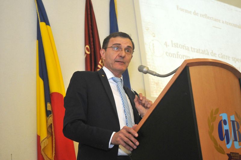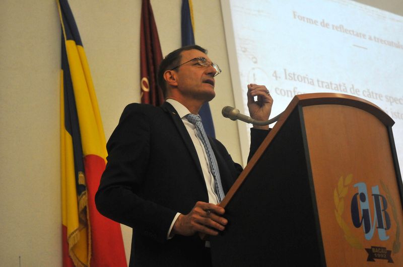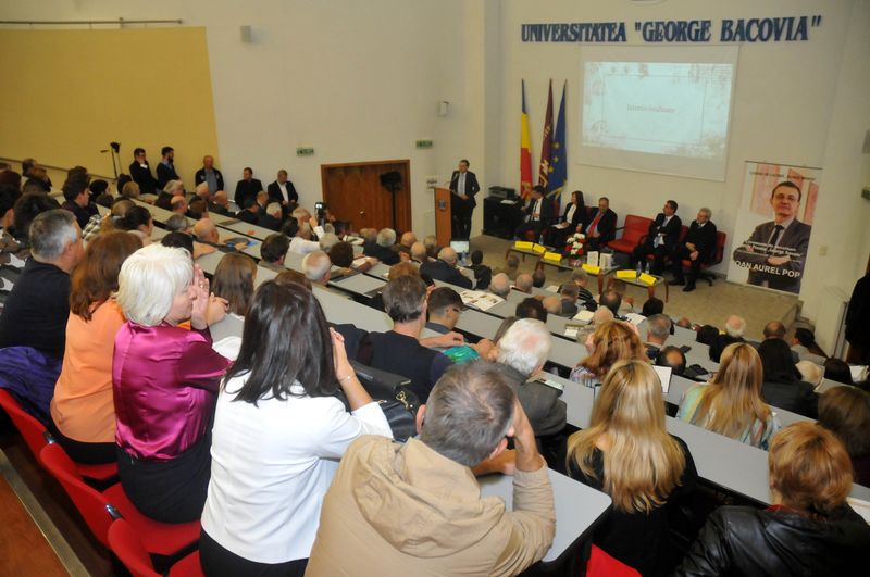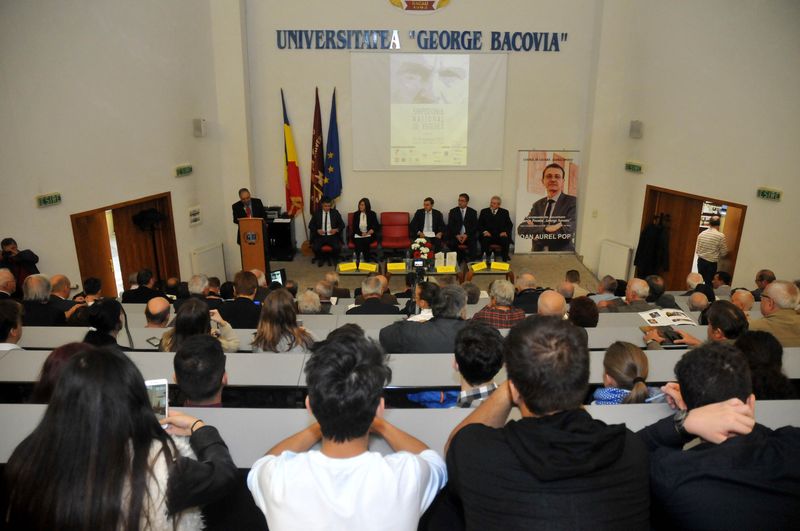 De la ora 11.00, în Aula Universităţii „George Bacovia”, studenţi, elevi şi profesori, invitaţii din ţară, din Cernăuţi şi Chişinău, au asistat la o conferinţă – pledoarie extraordinară, un adevărat manifest, „Elogiul Istoriei”, susţinută de acad. Ioan-Aurel Pop, rector al Universităţii „Babeş-Bolyai” din Cluj, autor a peste 40 de cărţi, specialist în istoria medievală, unul dintre cei mai reputaţi medievişti din România. Istoriograful ardelean a plecat în susţinerea tezei sale de la faptul că despre istoria acestui neam se vorbeşte tot mai denaturat, se manifestă o neîncredere în istorie şi istorici din cauza tratării simplistă şi simplificatoare a istoriei, din cauză că nu se merge la surse, la surse credibile, unii nu vor, alţii nu pot, nu cunosc limbile latină, greacă, ebraică, germană, etc., acolo unde se găsesc izvoarele.