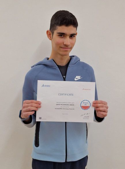 “Sunt Bibire David  elev în clasa a X-a la Colegiul Național „Gheorghe Vrănceanu” din Bacău, la profilul matematică-informatică, și mă descriu ca fiind dedicat, meticulos și perseverent. Din 2024, fac parte din echipa de robotică Smart Cluster, unde activez în cadrul departamentului de mecanică și proiectare. Motivat de dorința de a învăța continuu și de a contribui la proiecte tehnice inovative, am ales să susțin examenul CSWA și CSWP în SolidWorks pentru a-mi certifica cunoștințele în CAD și a-mi dezvolta abilitățile în modelarea 3D.”