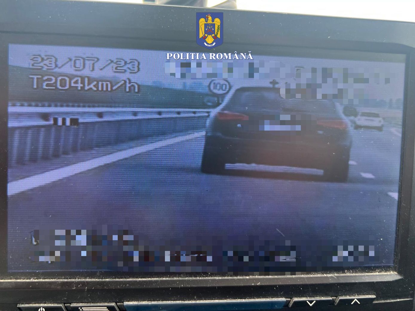 La data de 23 iulie a.c, un echipaj de poliție din cadrul Serviciului Rutier Bacău a depistat, pe Dn2-E 85, în afara localității Dumbrava, un conducător auto de 47 de ani, în timp ce conducea un autoturism pe autostrada A7 cu viteza de 204 km/h.