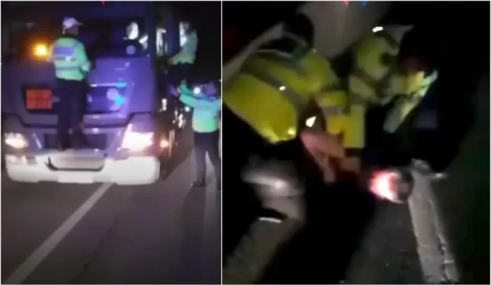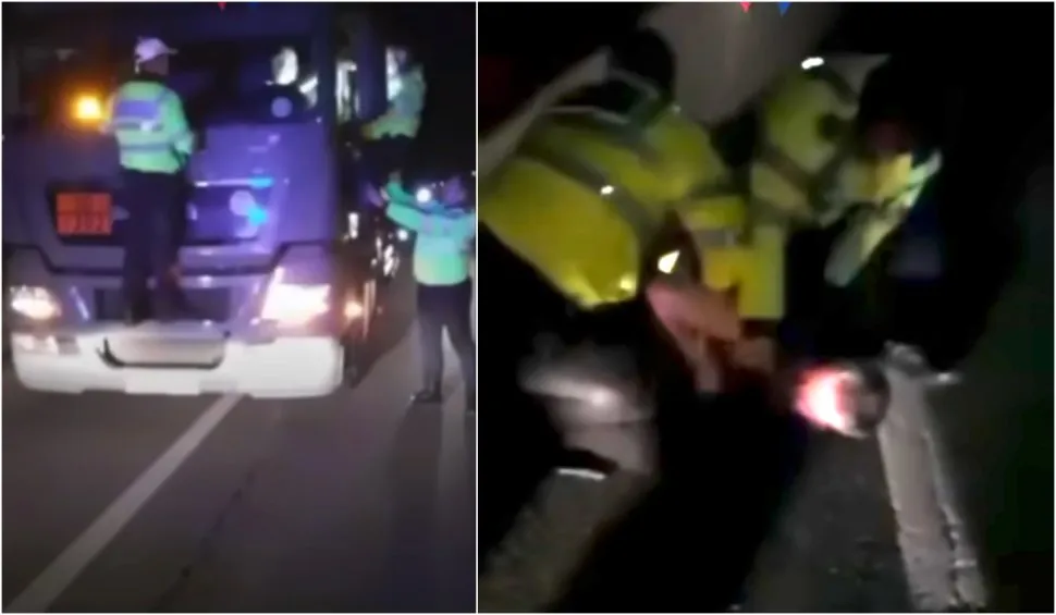 La oprirea autovehicului ca urmare a solicitării echipajului de poliție, șoferul s-a încuiat în camion și a refuzat orice comunicare cu polițiștii. Situația se impunea a fi clarificată, fapt pentru care, polițiștii au deschis portiera autovehiculului, prin geamul lateral.