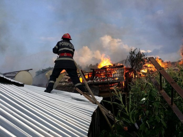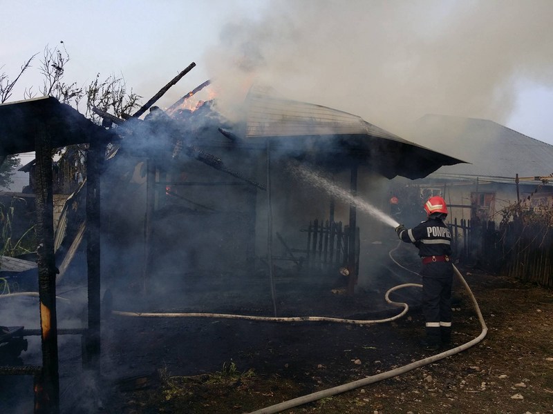 Focul a distrus acoperisul grajdului, pe o suprafata de 60 de mp, dar si anexele vecinului, iar militarii au stabilit la final ca cel mai probabil a fost pus intentionat.