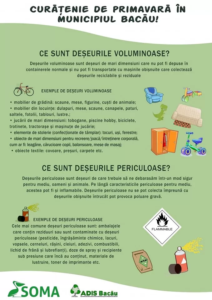Pe 4 aprilie 2023, SOMA în parteneriat cu ADIS BACĂU va lansa o campanie de colectare a deșeurilor voluminoase și a deșeurilor periculoase în orașul Bacău. Scopul campaniei este de a încuraja eliminarea responsabilă a deșeurilor casnice prin oferirea unei modalități ușoare și convenabile pentru cetățenii din Bacău de a se debarasa de mobilierul vechi, deșeurile voluminoase și materialele periculoase.