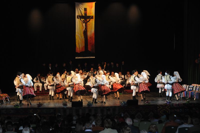 Marti, 3 mai, de la ora 18.00, Ansamblul Folcloric Profesionist “Busuiocul”, condus de maestrul coregraf Petre Vlase, cu sprijinul Consiliului Judetean si al Primariei Bacau, a oferit bacaunilor un spectacol extraordinar de folclor si cântece liturgice, dedicat marii sarbatori a crestinatatii – Invierea Domnului Iisus Hristos. Invitati speciali au fost Corala „Laudamus” a Seminarului din Roman, Corala Bisericii „Sfântul Nicolae” din Bacau si Grupul Folcloric al Scolii Pancesti – Sascut. Si-au mai dat concursul Corpul de Balet al Colegiului National de Arta „George Apostu”, condus de prof. Simona Baicu, preotii – solisti Ionut Avram si Ciprian Ignat.
