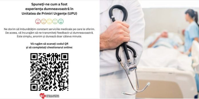 Spitalul Județean de Urgență (SJU) Bacău continuă să își consolideze eforturile pentru îmbunătățirea calității serviciilor medicale oferite în Unitatea de Primiri Urgențe (UPU). Începând de astăzi, pacienții și aparținătorii care beneficiază de asistență medicală în cadrul UPU sunt invitați să completeze un chestionar online privind satisfacția pacientului.
