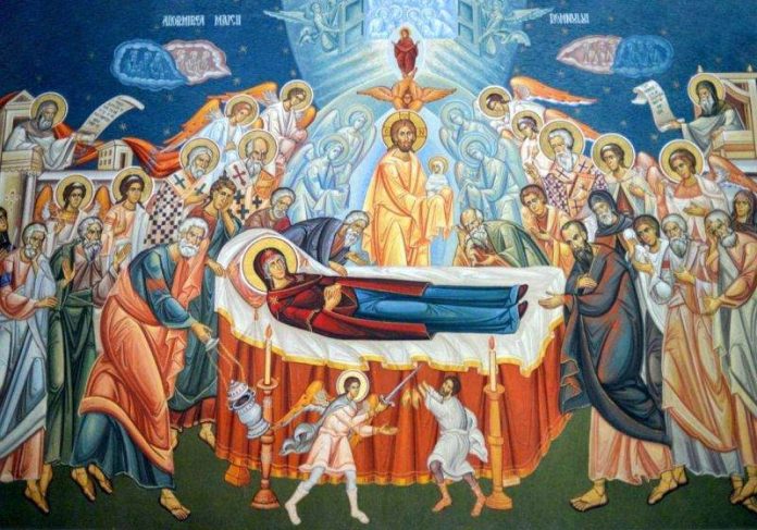 Există o poveste, dragii mei, pe care am descoperit-o de curând: se spune că întorși din Cruciada a IV a (1202 -1204), creștinii latini au adus din Constantinopol o icoană care i-a impresionat profund pe cei de-acasă, din Veneția. Ea reprezenta o Mamă care-și împlinise datoria, întinsă pe un pat al morții, înconjurată fiind de ucenicii triști ai Fiului. O femeie ce-și împlinise menirea, plinătate a menirii fiind Învierea Fiului său. O ființă care trăise ca un Cer deschis Împăratului, păstrând pecetea fecioriei asemenea unei stele luminând cearcănul de tristețe al umanității. Icoana părea a surprinde și printr-un alt amănunt. Deasupra trupului care-și afla odihna, Fiul purta în brațe un prunc înfășat în albul iertării: sufletul Maicii sale. Ca o podoabă de preț, ce nu avea să cunoască putrezirea, trupul Maicii strălucea în iubirea Fiului…