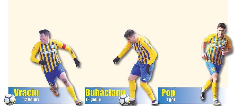 „Aviatorii” au al șaptelea atac al campionatului: 37 de goluri marcate. Din acestea, 25 aparțin cuplului Valentin Buhăcianu- Catălin Vraciu, 13, respectiv 12 reușite. Celor doi li s-a adăugat, din iarnă, o nouă „gură de foc” în persoana lui Alexandru Pop, venit de la UTA Arad.