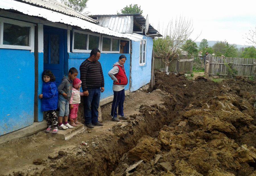 „Ne este teamă să nu se prăbuşească noaptea şi să cadă aici peste noi. De doi ani ne chinuim aşa. Am fost la primărie şi am cerut ajutor şi abia acum a trimis un excavator, a făcut nişte şanţuri în jurul casei şi cică o să pună nişte furturnuri de dren. Dar cine ştie dacă o să funcţioneze. Eu cred că aici dedesubt este un izvor, că e prea multă apă. Acum mă tem să nu se dărâme casa”, ne-a spus Sorin Bâcu. „Este foarte greu. Eu îi ajut cu ce pot, dar şi noi suntem mulţi şi ei sunt şase persoane şi nu prea avem loc. Nu pot să-i dau nici afară. Au copii mici şi în casa lor este apă. Se supără că sunt în situaţia asta şi mă tem peste băiatul meu că este şi bolnav cu inima”, spunea şi Maria Bâcu, mama proprietarului. Autorităţile locale au trimis la locuinţa lor un utilaj, care a început să sape un şanţ prin care să se scurgă apa ce ar urma să se dreneze prin furtunurile ce vor fi amplasate în subsolul casei. În prezent, într-una din camere, unde proprietarul a sapat şi el un şanţ adânc de 20 -30 de centimetri, apa este foarte sus, şi practic poate fi scoasă cu găleata. „Apa este în casă, aşa cum se vede. Să vedem dacă o să meargă cu furtunul sau ce vor să facă aici”, mai spunea Sorin.
