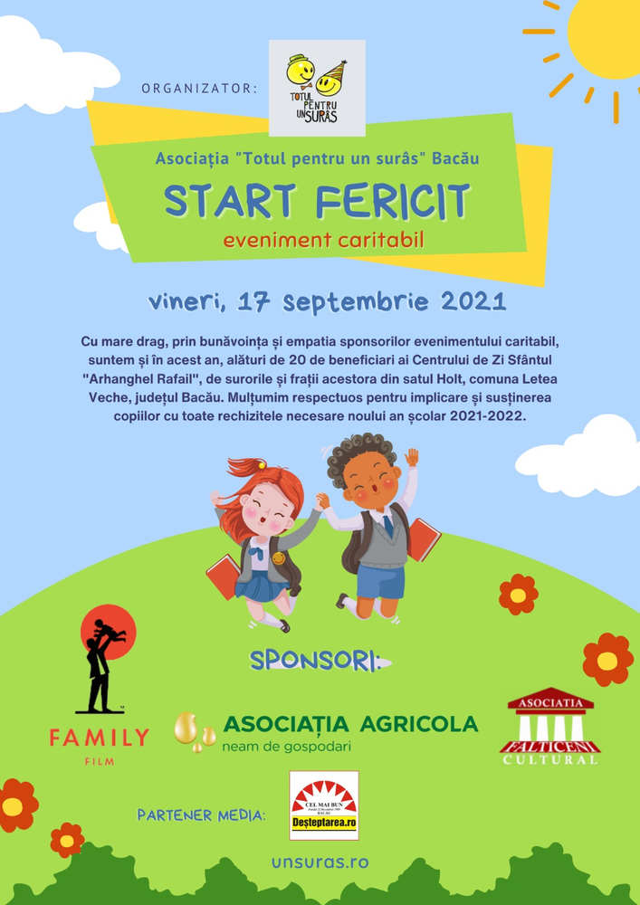 Vineri, 17 septembrie a.c., Asociația Totul pentru un surâs a fost alături de 20 de beneficiari ai Centrului de Zi Sfântul „Arhanghel Rafail” și de surorile și frații acestora din satul Holt, comuna Letea Veche, județul Bacău, cu un sprijin concret constând în ghiozdane și rechizitele necesare noului an școlar 2021-2022, pentru ca startul la învățătură să le fie, cu adevărat, fericit. Copiii au vârste între 6-13 ani și sunt ocrotiți prin grija deosebită a preotului Iulian Adam de la Parohia Ortodoxă Holt, cu multe generații în cei peste 9 ani de existență a centrului, reușindu-se cu eforturi din partea cadrelor didactice și a oamenilor de bine, să se prevină și abandonul școlar. Toți copiii prezenți la eveniment au fost tare încântați de darurile școlare primite, de răcoritoarele oferite de Florăria Passiflora prin sprijinul constant al doamnei Cristina Vrabie și al domnului Marian Nastasă și de tortul uriaș, deosebit de delicios, oferit de Cofetăria Gio, prin amabilitatea întregii echipe și bunăvoința doamnei Mariana Popa. Se cuvine să mulțumim respectuos oamenilor dragi și empatici care ni s-au alăturat evenimentului caritabil „Start fericit”. Recunoștința copiilor se îndreaptă către: Family Film Entertainment din București, Asociația „Agricola Neam de Gospodari” și Asociația Fălticeni Cultural, care au făcut posibil ca dorințele beneficiarilor de la Centrul de Zi Sfântul „Arhanghel Rafail” din satul Holt, să se transforme în reale bucurii.