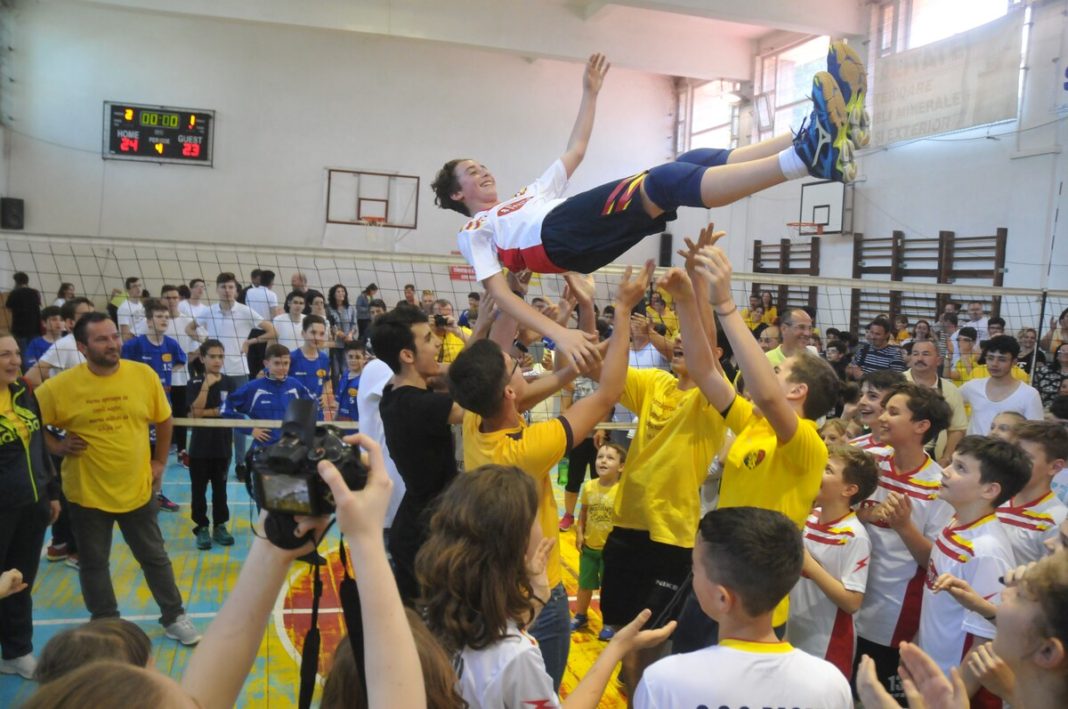 E sus. Deasupra tuturor. E sus, deasupra tuturor deoarece colegii săi de echipă de la CSȘ Bacău, alături de care tocmai a câștigat titlul național la minivolei, îl aruncă în aer, în semn de triumf. Dar e sus, deasupra tuturor și pentru că Federația l-a desemnat cel mai bun jucător al turneului final. Ștefan cel mare. Sau, mai bine zis, cel mai mare. Ștefan Văduva a împlinit 13 ani pe 2 martie. Aproape jumătate din ei i-a petrecut în sala de volei.