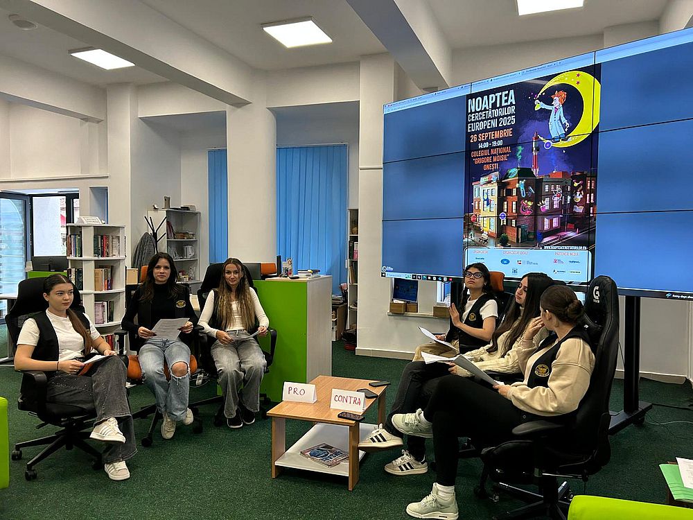 Vineri, 26 septembrie, Colegiul Național „Grigore Moisil” Onești (reprezentat de director, doamna prof. Irina-Livia Enache), în parteneriat cu Biblioteca Municipală „Radu Rosetti” (director, domnul Ionuț Tenie) și Centrul Județean de Excelență Bacău (director, doamna prof. Daniela Bejan), a adus știința mai aproape de comunitate printr-un eveniment de amploare: Noaptea Cercetătorilor Europeni 2025. Manifestarea s-a desfășurat în cadrul inițiativei europene Marie Skłodowska-Curie Actions și a reunit peste 300 de participanți – elevi, profesori, părinți și pasionați de știință.
