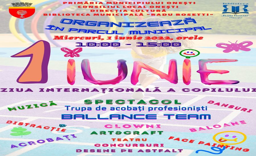 Primăria municipiului Onești și Biblioteca „Radu Rosetti” organizează, pe 1 iunie, o serie de evenimente dedicate Zilei Internaționale a Copilului, care se vor desfășura în Parcul municipal.