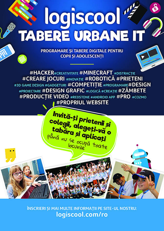 În perioada 13 iulie – 13 septembrie Logiscool Bacău organizează Taberele Urbane de Vară – o serie de cursuri de programare și alte discipline digitale adaptate la perioada de vacanță.