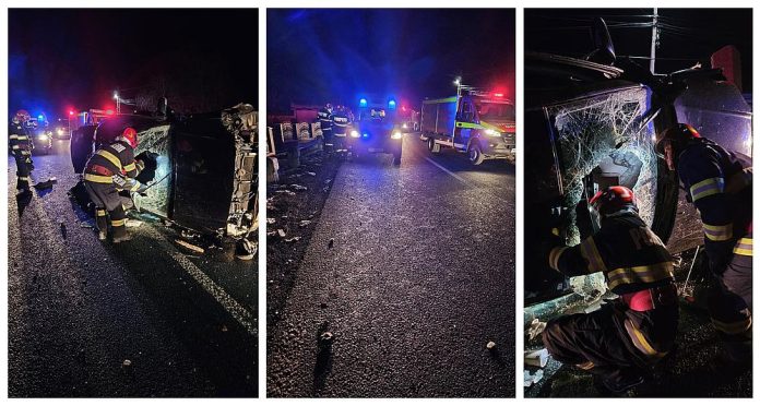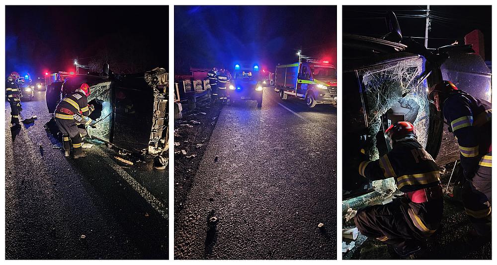 La sosirea echipajelor de intervenție, salvatorii au constatat că un autoturism era răsturnat, iar o persoană rămăsese blocată în interior. Pompierii au acționat rapid pentru extragerea victimei, intervenția fiind desfășurată contra cronometru, în condiții dificile, din cauza poziției instabile a vehiculului.