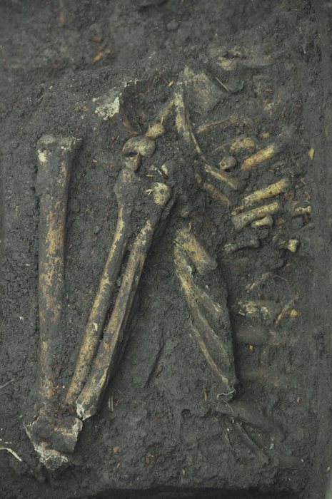 Discutia cu dr. Marius Oprea este intrerupta de arheologi. Au iesit la iveala mai multe oseminte. Colegul meu Nelu Bâsca devine agitat, isi face cu greu loc printre arheologi. Emotia ii cuprinde pe toti. Un arheolog vine cu un inel de bronz, gasit intre degetele unui schelet, altul aduce trei nasturi. Se lasa tacerea.