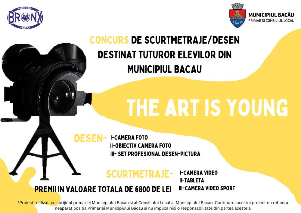 Asociația Bronx People, în colaborare cu Primăria Bacău, vă invită să descoperiți o oportunitate excepțională de a vă exprima creativitatea și de a vă împărtăși viziunea artistică. „The Art si Young” este un proiect dedicat tinerilor artiști talentați cu vârsta peste 13 ani din Municipiul Bacău.