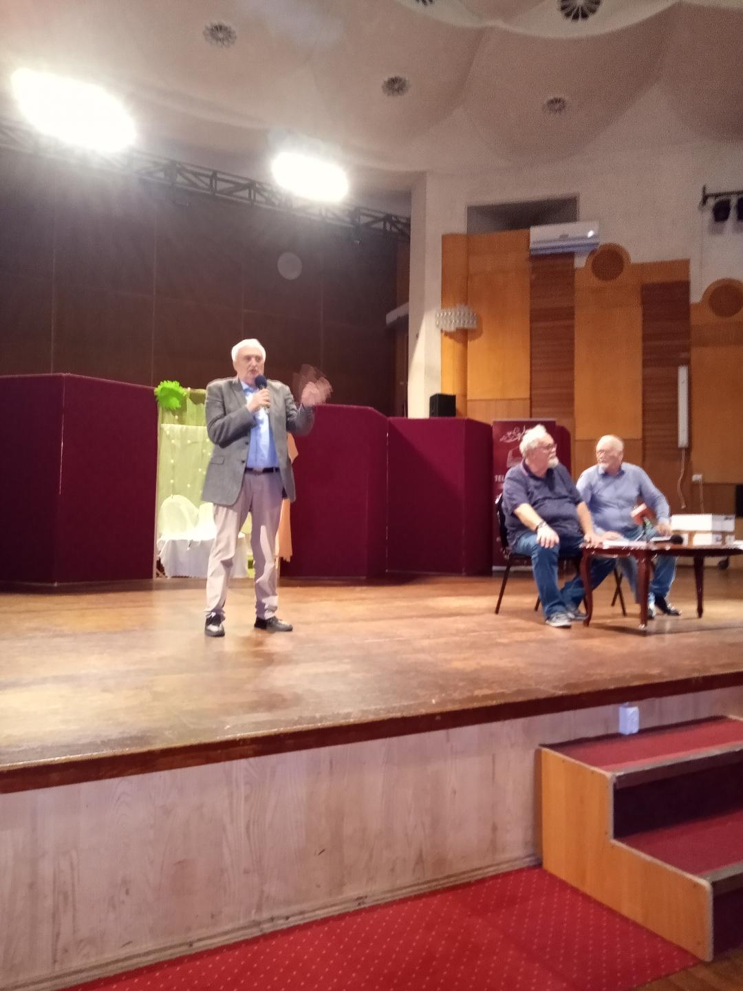 În după-amiaza zilei de vineri, la Sala Ateneu, USR a invitat oaspeții din țară la un moment…dramatic. A fost pusă în scenă o bijuterie, un moment dramatic, un omagiu adus poetei și soției de poet – Agatha Grigorescu – Bacovia, în regia și scenariul poetei Cecilia Moldovan, cu particparea extraordinară a actorilor Noemi Eliza Judeu și Ștefan Hagimă, coregrafia fiind semnată de Tudor Mancaș – Colegiul Național de Artă Bacău.