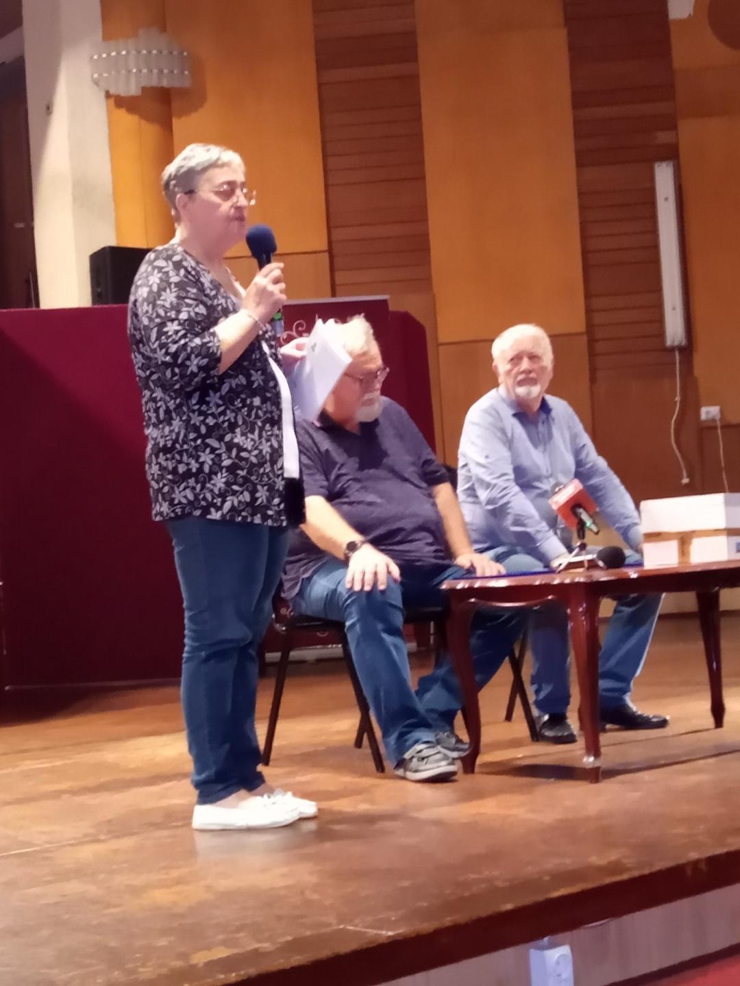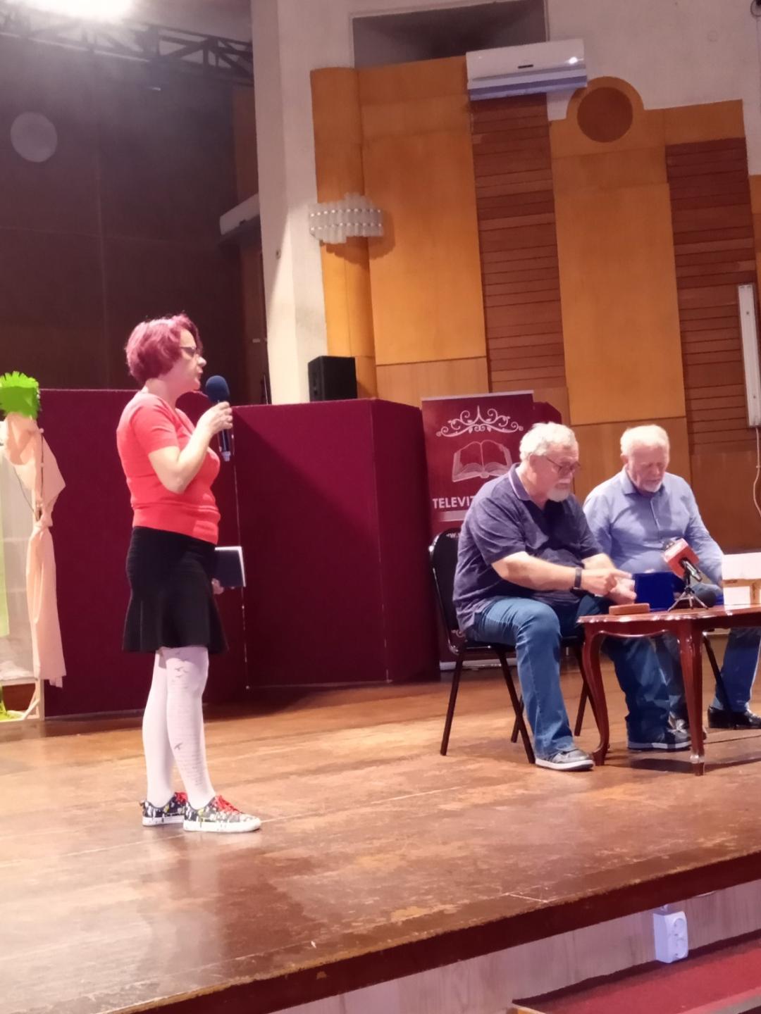 În după-amiaza zilei de vineri, la Sala Ateneu, USR a invitat oaspeții din țară la un moment…dramatic. A fost pusă în scenă o bijuterie, un moment dramatic, un omagiu adus poetei și soției de poet – Agatha Grigorescu – Bacovia, în regia și scenariul poetei Cecilia Moldovan, cu particparea extraordinară a actorilor Noemi Eliza Judeu și Ștefan Hagimă, coregrafia fiind semnată de Tudor Mancaș – Colegiul Național de Artă Bacău.