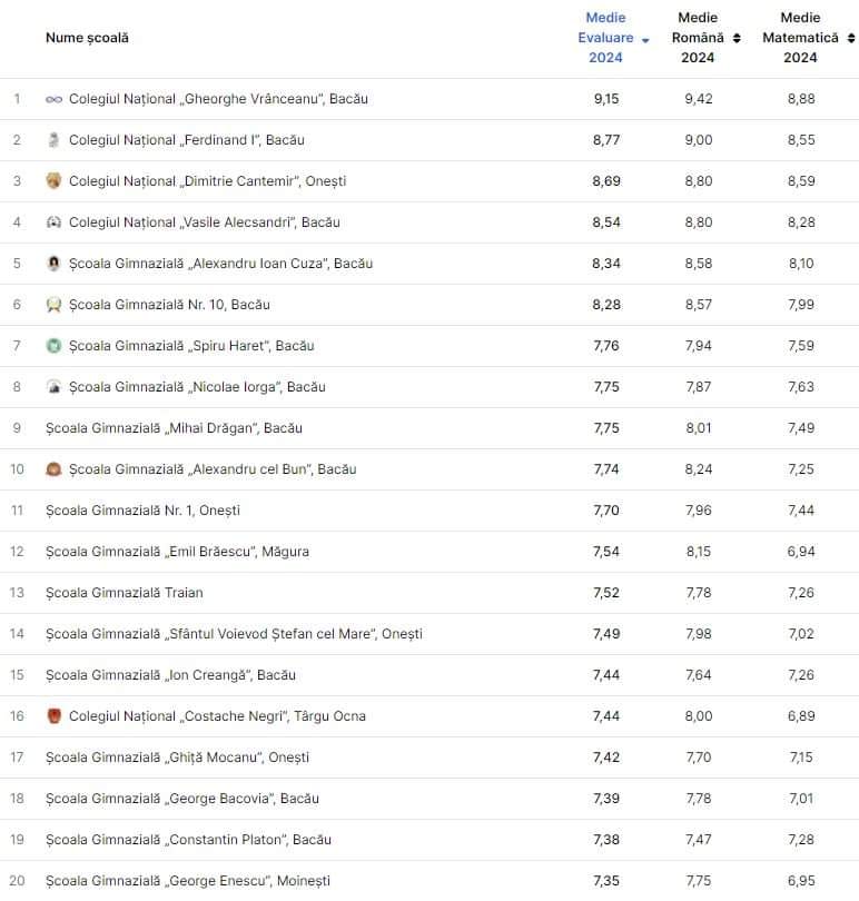 Profesorul Lucian Șerban a realizat un top al școlilor din județul Bacău în funcție de media obținută la Evaluarea Națională din 2024. Clasamentul evidențiază performanțele elevilor din diferite unități de învățământ, cu rezultate notabile atât la limba română, cât și la matematică.