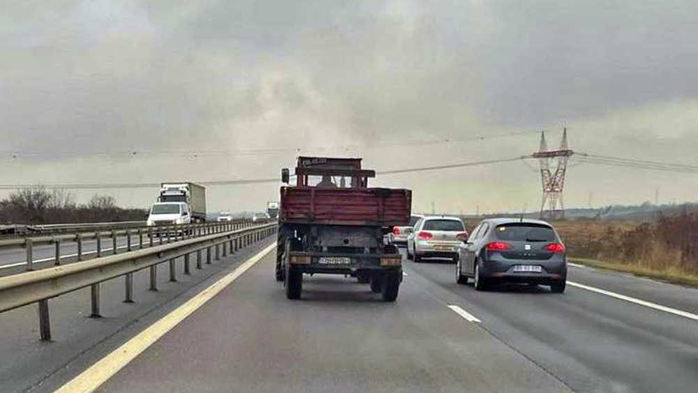 Tractor cu remorcă pe banda de viteză a Autostrăzii A1