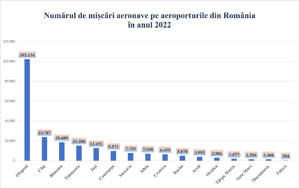 În ceea ce privește mișcările de aeronave din anul 2022 (aterizări și decolări), totalul de 220.681 înseamnă o creștere de aproape 32 de procente față de cifra din anul 2021, dar rămâne cu 17% mai mic față de valoarea din 2019. Traficul aerian de marfă în schimb a fost peste nivelul înregistrat înainte de pandemie: în 2022 pe aeroporturile din România au fost transportate 53.877 de tone de marfă, cu 5,8% mai mult decât în anul 2019.