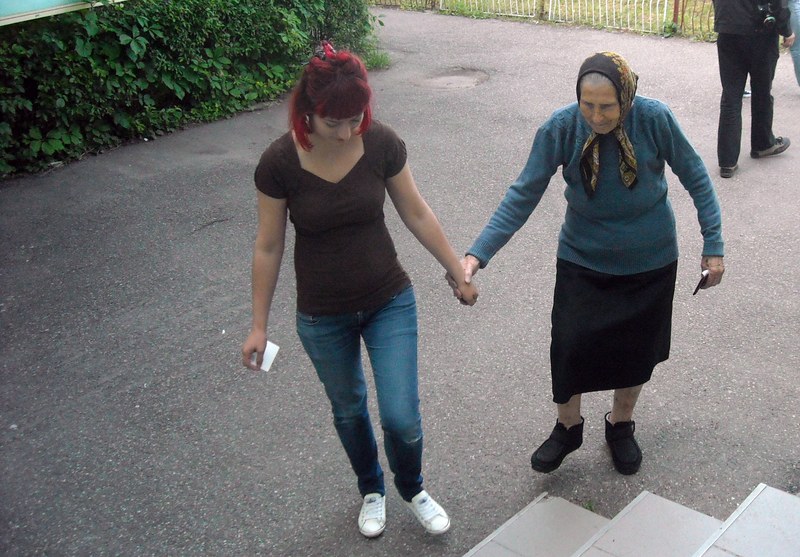 Sunt vecine de bloc si s-au intâlnit dimineata cu scopul de merge la vot, mai ales ca la orele matinale, stiu ele ca nu e niciodata inghesuiala. „Poate imi da si mie ceva, azi”, imi strecoara, in gluma, batrâna doamna. Nu-si amintesete nici ce-a mâncat aseara, darmite când a votat intâia oara, continua sa glumeasca batrâna.