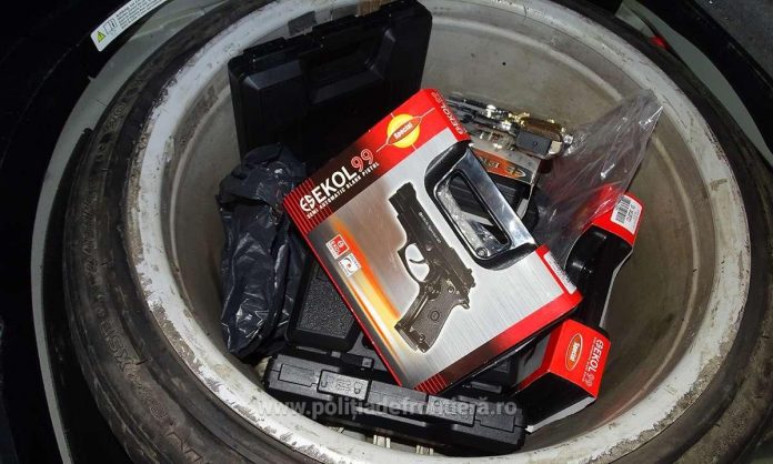 Aceştia erau cu un autoturism de lux, înmatriculat în Bulgaria, şi s-au prezentat la Punctul de Trecere a Frontierei Giurgiu, pe sensul de intrare în țară, doar că acolo, în urma unui control amănunțit asupra maşinii, agenţii au descoperit, ascunse și nedeclarate, în spaţiul destinat roții de rezervă, şapte pistoale cu aer comprimat, calibrul 9 mm, 350 cartușe, calibrul 9 mm, și un articol pirotehnic cu 36 de focuri.