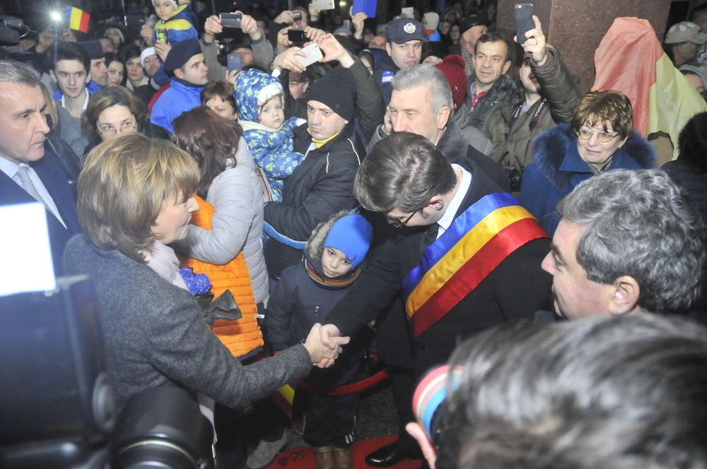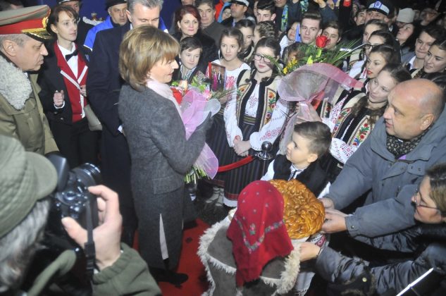 S-a intonat imnul national si cel al regalitatii, iar Principesa Margareta si Principele Radu au fost intâmpinati de autoritati. A urmat apoi o baie de multime, iar bacauanii prezenti la eveniment au avut ocazia sa dea mâna cu cei doi si sa-si imparta urari. La iesirea din gara, cei doi au fost asteptati de o limuzina si au plecat in mare graba spre sediul Crucii Rosii, a carei presedinte este.