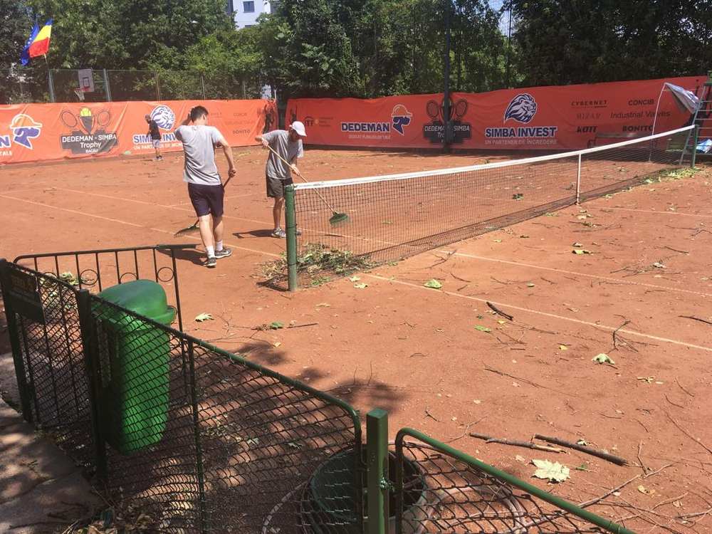 Pentru a avea tenis, organizatorii au avut însă serios de treabă. Furtuna s-a iscat, vă amintiți bine, marți seara. Din… senin. Ei bine, nu chiar din senin, pentru că la orizont, spre Vest, cerul se făcuse negru de supărare. Nimeni nu se aștepta însă ca, dintr-o dată, vârtejul să ia pe sus, la propriu, un meci de dublu și, odată cu el, umbrele, bannere, perdele de zgură și crengi groase de copac. „A fost ceva nemaivăzut. Iar grozăvia a fost că a venit pe neanunțate. Ne-am refugiat cu toții înăuntru. Mi-era și frică să ies și să închid nocturna, dar am făcut-o până la urmă, chiar dacă vântul era să mă zboare pur și simplu”, dezvăluie organizatorul și sufletul turneului, antrenorul SCM Bacău, Mihai Ciuntea. ”Madonna, che tempesta!”, continua să se crucească, a doua zi, cu accentul său de roman, tenismenul italian Simone Agostini. „Nu eram la teren, mă aflam deja la hotel, dar asta nu înseamnă că furtuna a fost mai puțin înspăimântătoare. Șuierul vântului, fulgerele orbitoare și copacii care se îndoiau până aproape de pâmânt m-au speriat tare. Călătoresc mult, am văzut că în ultima perioadă vremea face ravagii peste tot, indiferent că este vorba de temperaturi de foc sau de vijelii, dar așa furtună n-am prins niciodată”, a spus Agostini.