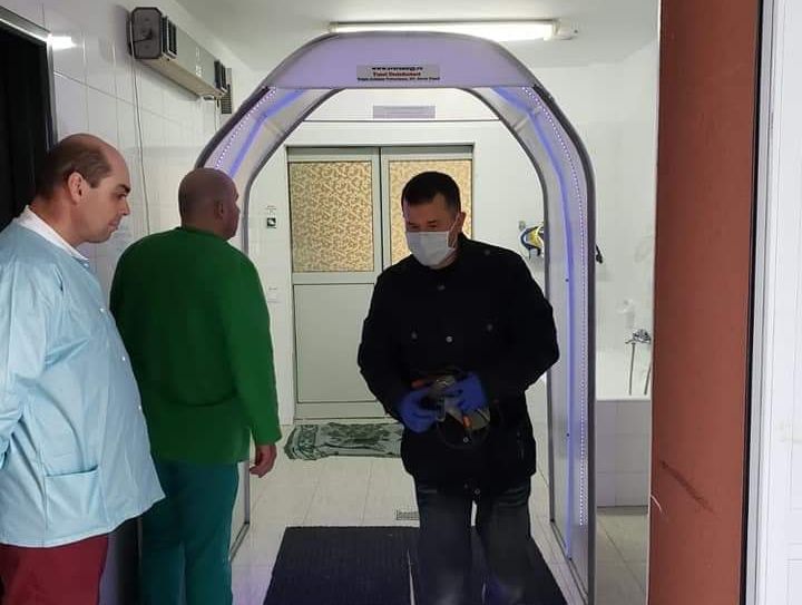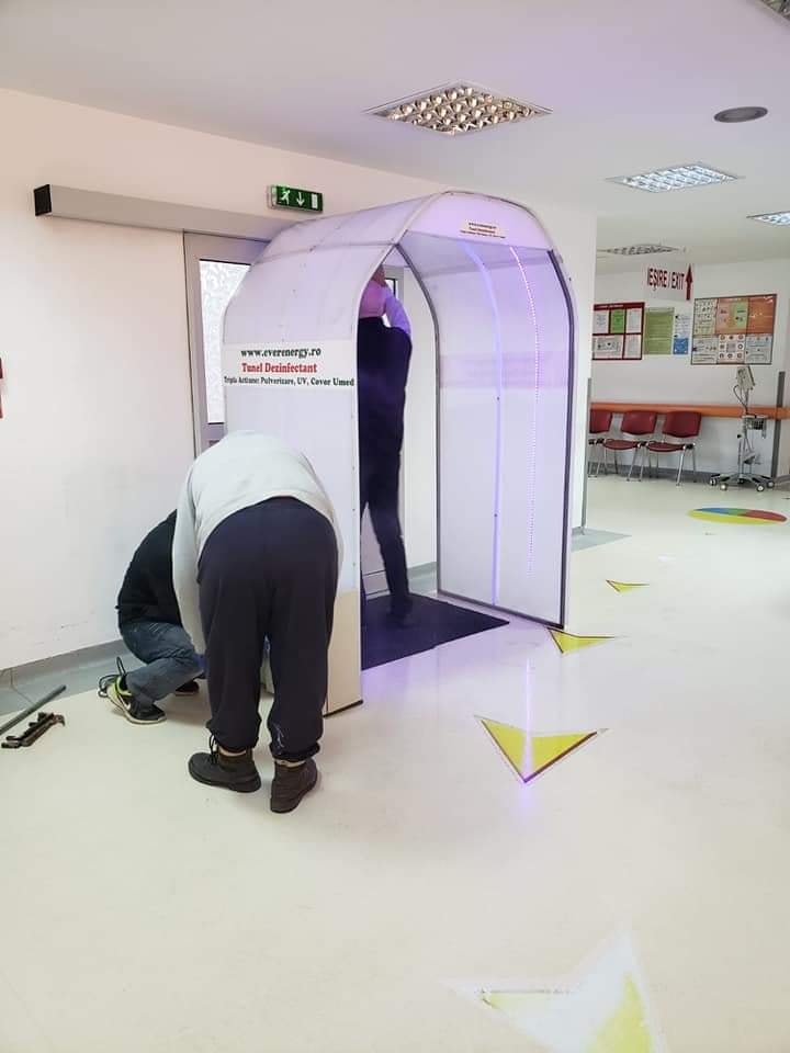 Militarii de la Inspectoratul pentru Situații de Urgență Bacău au montat un tunel de dezinfectare la Spitalul Municipal Onești. Cu ajutorul acestui dispozitiv, persoana care trece prin el se va putea dezinfecta atât prin pulverizarea soluției biocide, cât și cu ajutorul radiațiilor ultraviolete și a substanțelor de dezinfectare îmbibate în covorul umed. „Tunelul a fost realizat de o echipă de oameni cu inimă mare, din care face parte și un coleg de al nostru din cadrul Gărzii de Intervenție Comănești”, au anunțat reprezentanții ISU Bacău.