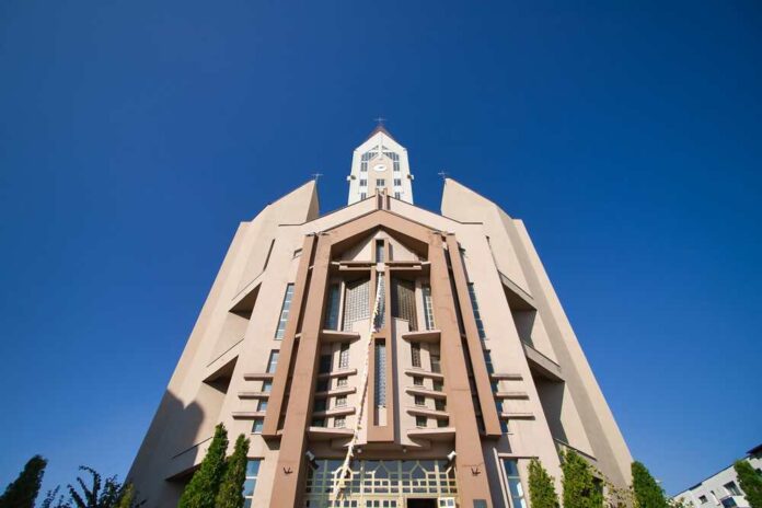 Este o construcţie frumoasă ce domină centrul Bacăului prin măreţia şi înălţimea sa. Biserica a fost sfinţită la 20 noiembrie 2005 de Preasfinţitul Petru Gherghel, episcop de Iaşi. Ea are o formă neconvenţională de 66×44, iar înălţimea de 70 m cu o suprafaţă utilă de 1.300 mp şi cu 1.050 locuri pe scaune; 52 m lungime, 44 m lăţime, 77 m înălţime, cu tot cu crucea din turn. Are două etaje, cu o cupolă imensă ce dă o strălucire deosebită interiorului bisericii, fără nici un stâlp central de susţinere.