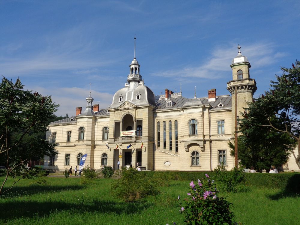 În mijlocul unui încântător parc tronează clădirea palatului, construit în stilul baroc târziu, de meşteri italieni (22 de încăperi mari, grupate pe două nivele). Ctitorie a lui N. Ghika-Comănești (1875 – 1921, memorialist, explorator, jurist, om politic), palatul este o clădire monumentală, construită în stilul baroc târziu, de meşteri italieni (22 de încăperi mari, grupate pe două nivele). Arhitect a fost Albert Galleron (cel care a proiectat clădirea Ateneului Român, ca și pe cea a Băncii Naționale). În anul 1988, palatul a fost transferat muzeului judeţean, care a organizat expoziţia etnografică şi de artă populară din zona Trotuş, deschisă în 1989, iar în anul 1995, expoziţia de artă plastică românească contemporană. Colecţia cuprinde obiecte privind ocupaţiile tradiţionale din zona Trotuş şi obiceiurile de iarnă din aceeaşi zonă, meşteşuguri, industria casnică, ţesături de interior, costume tradiţionale.