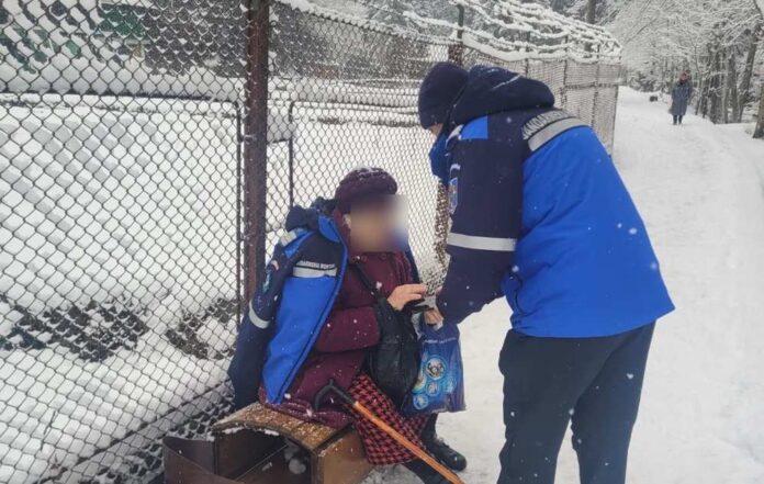 Janramii au luat-o în brațe și au așezat-o pe un postament de pe trotuar, unde Florin a rămas lângă doamna Elena și i-a dat haina pentru a o încălzi, iar Sebastian a sunat la 112.