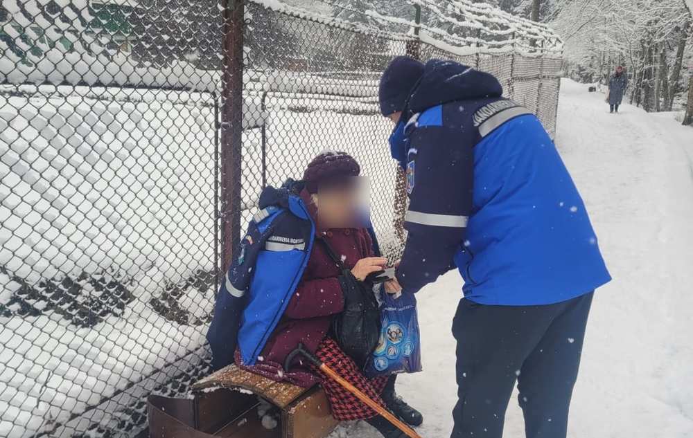 Pe colegii noștri, Florin și Sebastian, i-a anunțat un cetățean, dar bătrana era chiar pe direcția lor de mers.Au oprit imediat și au mers să vadă despre ce este vorba. Doamna Elena era în genunchi și încerca din răsputeri să se ridice. Era rănită, acuza dureri la un picior. Aceasta le-a spus că în timp ce mergea pe aleea Izvoarelor din stațiunea Slănic Moldova, s-a împiedicat și a căzut în zăpadă.
