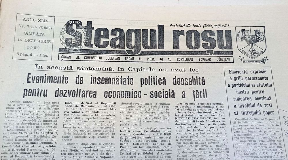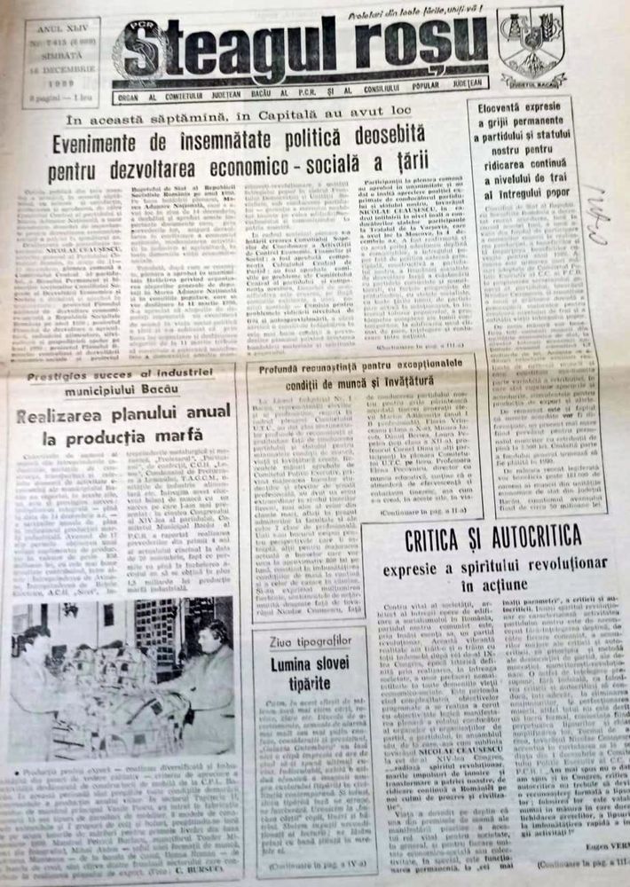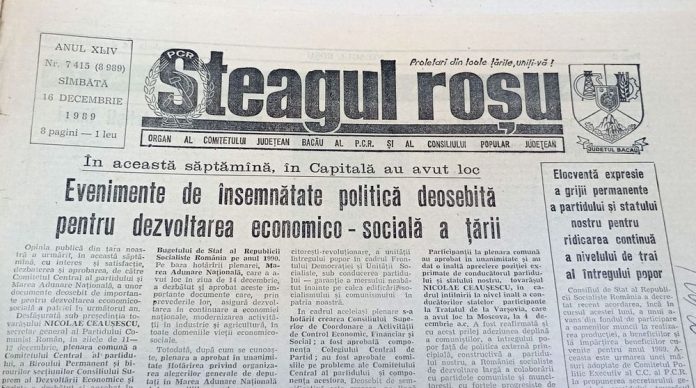 La 16 decembrie 1989, în Bacău a apărut ultima ediție a ziarului Steagul roșu, publicație care timp de decenii a fost organul de presă al Comitetului Județean al Partidului Comunist Român și al Consiliului Popular Județean. Ediția pregătită pentru 22 decembrie nu a mai fost tipărită, întrucât evenimentele declanșate de Revoluția română au dus la prăbușirea vechiului regim, iar în aceeași zi a apărut primul număr al ziarului Deșteptarea, sub un titlu și o orientare editorială noi.