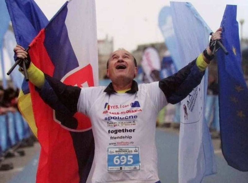 Ilie Roșu, originar din Adjud, poate fi considerat un recordman absolut, cu 293 de maratoane la activ, care au însumat peste 10. 000 de km, foarte multe dintre ele fiind alergate cu drapelul României în mână!