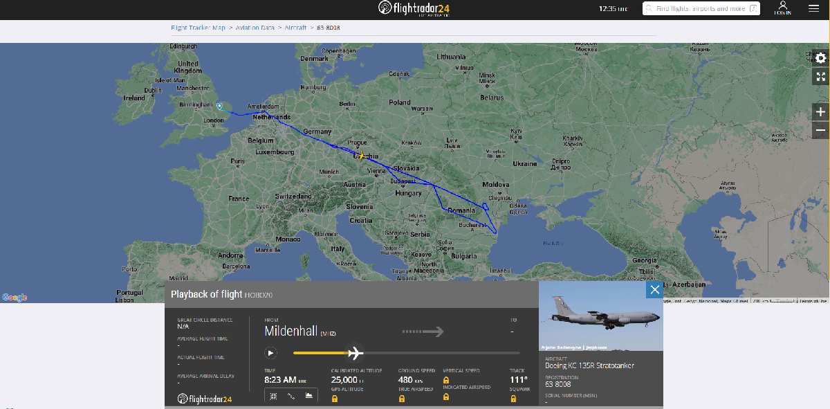 Sebastian T. a căutat imediat informații despre avionul misterios pe FlightRadar24, o platformă online de monitorizare a traficului aerian. Acesta a descoperit că singurul avion în zonă era un Boeing Stratotanker al NATO, care decolase din Anglia și se întorcea acasă după o misiune de alimentare a avioanelor de supraveghere care zboară deasupra României.